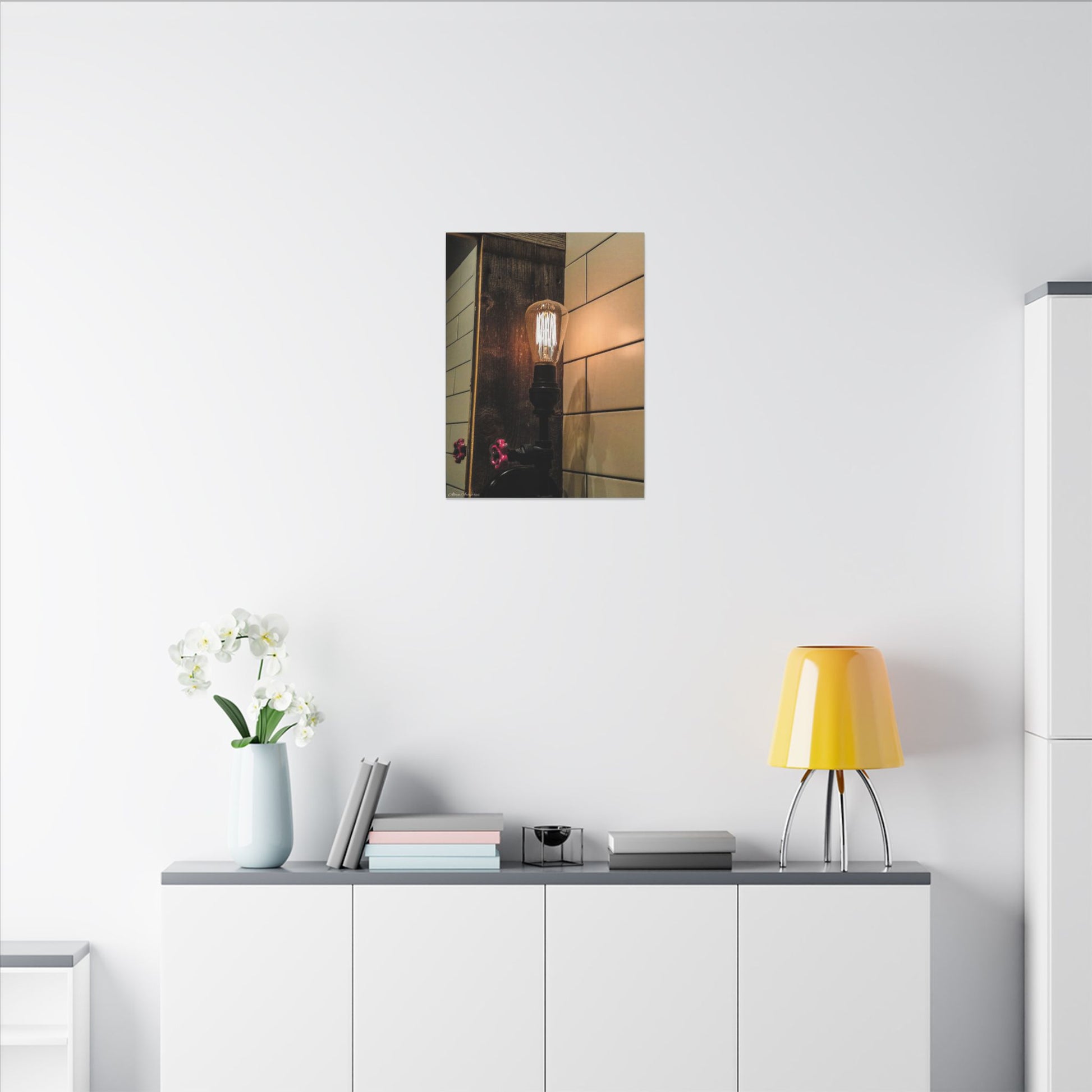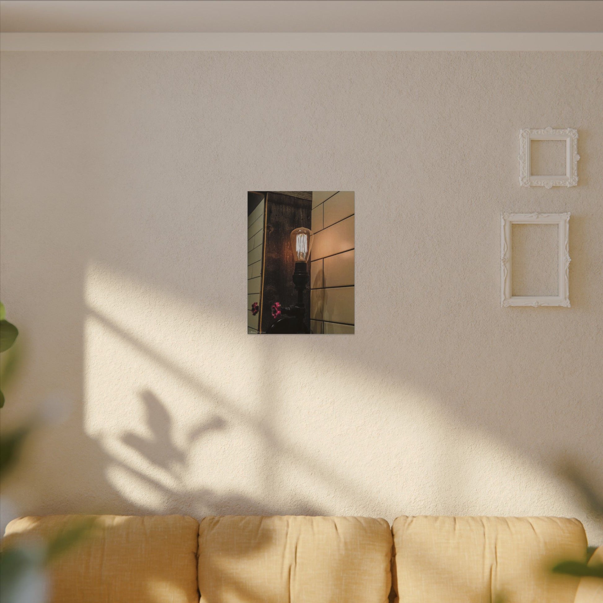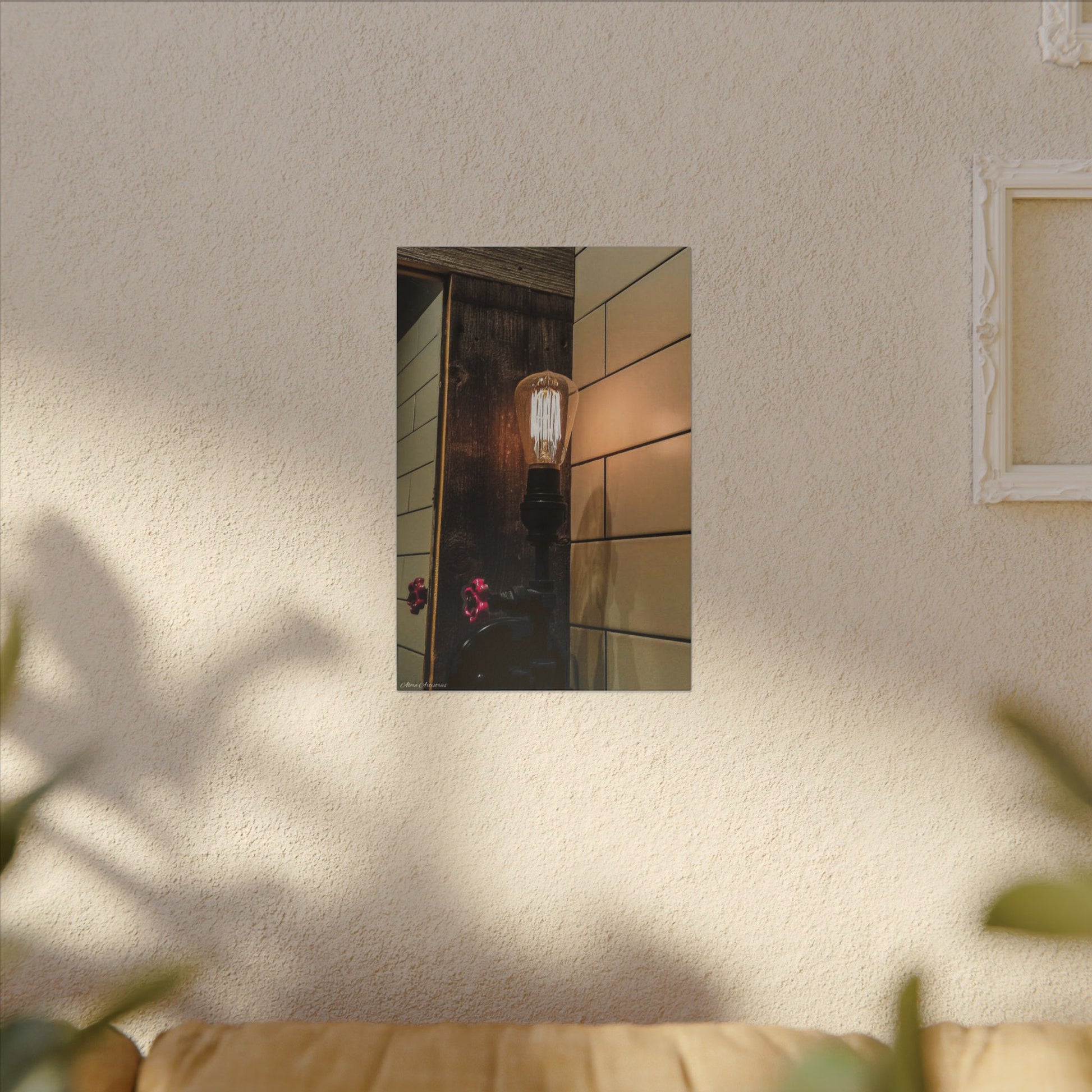 A matte-stretched canvas that captures the warm, golden glow of an old-fashioned gas station light. Soft incandescent tones, candlelike warmth, and rustic materials lend a nostalgic industrial feel to the moment. Hung above a narrow console, beside a coat rack, or in a small entryway, this canvas brings a private, reflective moment into everyday spaces. It speaks to people who love reclaimed spaces, roadside nostalgia, and the subtle poetry of light hitting worn surfaces. The texture of the matte finish and the stretched edges keep the look understated and gallery-ready rather than glossy or flashy, so the image ages gracefully with the room.